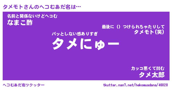 | ポケモン風あだ名 | 『タメチュウ』『タメモダネ』 |