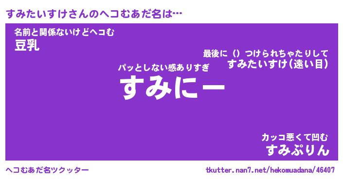 | 男性向けラノベタイトル風あだ名 | 『すみたいすけの憂鬱』 |