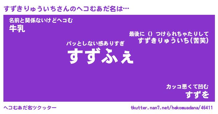 | ヒーロー風カッコイイあだ名 | 『スーパースズキリュウイチ』 |