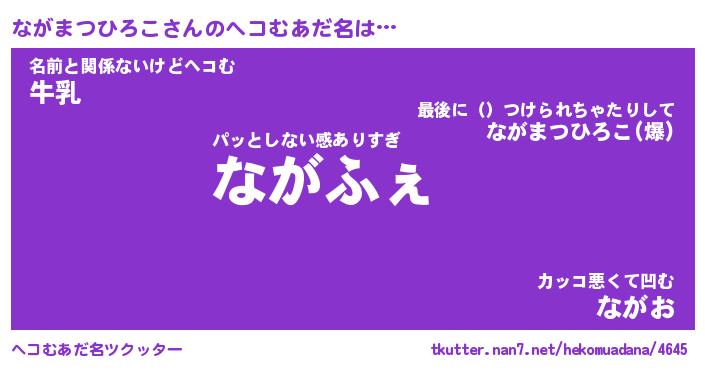 | ヒーロー風カッコイイあだ名 | 『スーパーナガマツヒロコ』 |
