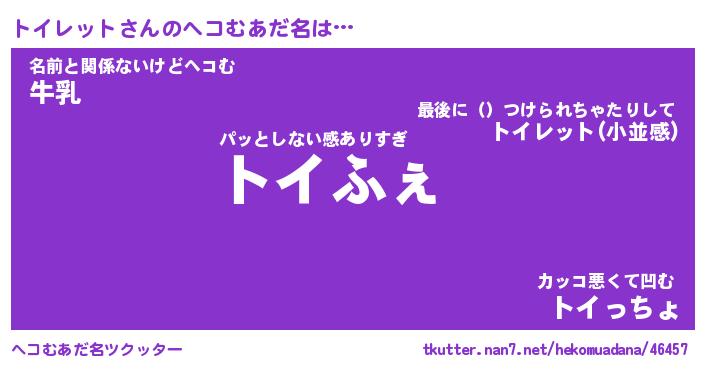 | ポケモン風あだ名 | 『トイチュウ』『トイレダネ』 |