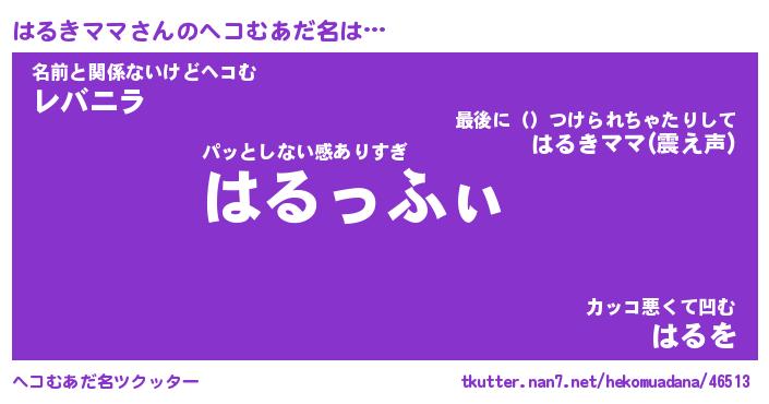 | ファンタジー風あだ名 | 『ハルフェル』『エターナルハルキママー』 |