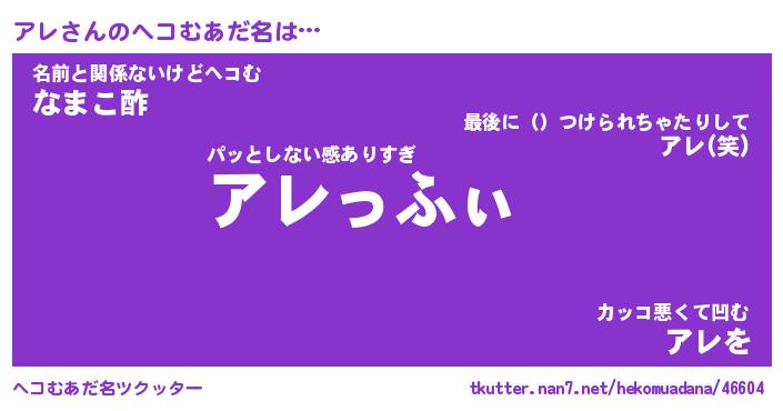 | ヒーロー風カッコイイあだ名 | 『スーパーアレ』『ウルトラアレマン』 |
