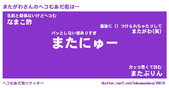 | ヒーロー風カッコイイあだ名 | 『スーパーマタガワ』『天弓騎士マタ』 |