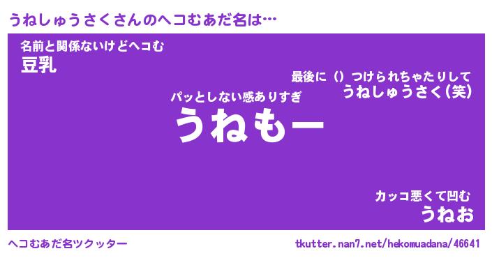 | 男性向けラノベタイトル風あだ名 | 『うねしゅうさくの憂鬱』 |