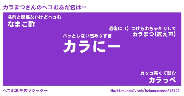 | 胡散臭い通販商品みたいなあだ名 | 『必ず成功するブレスレット…その名も「カラまつ」』 |