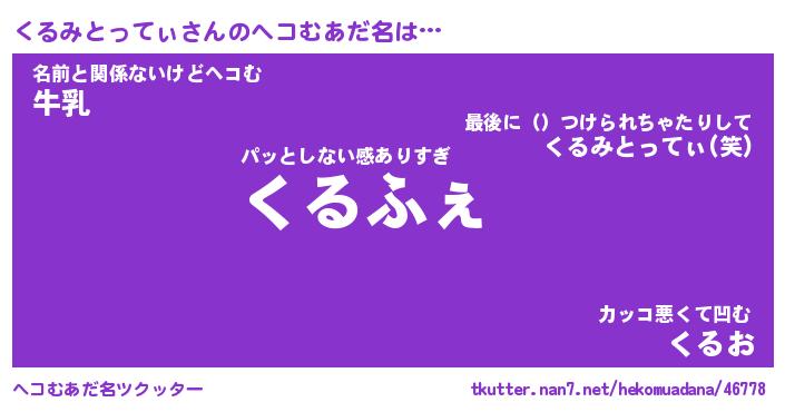 | 恥ずかしいあだ名 | 『プリティーくるみとってぃ』『くるちん』 |