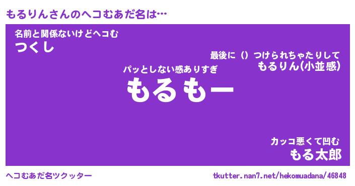 | 意味不明あだ名 | 『ペロリンもるりん』『永久保存もるりん』 |