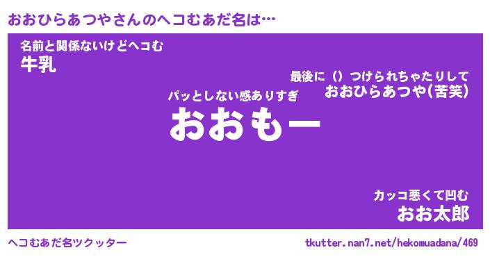 | 胡散臭い通販商品みたいなあだ名 | 『モテモテ間違いなし霊験あらたかなお札…その名も「おおひらあつや」』 |