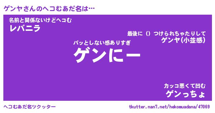 | ポケモン風あだ名 | 『ゲンチュウ』『ゲンヤダネ』 |