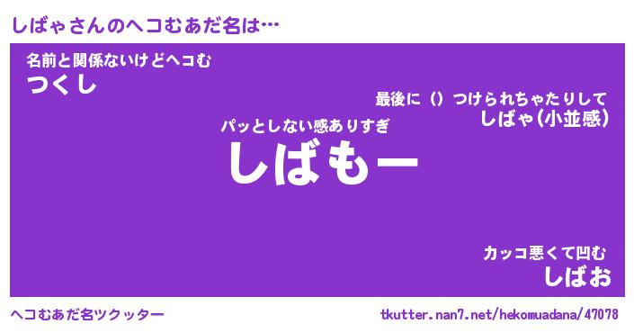 | ヒーロー風カッコイイあだ名 | 『スーパーシバャ』『ウルトラしばゃマン』 |