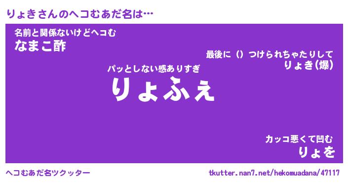 | 2回繰り返すあだ名 | 『りょりょ』『りりょょ』『ぬれぬれ』 |