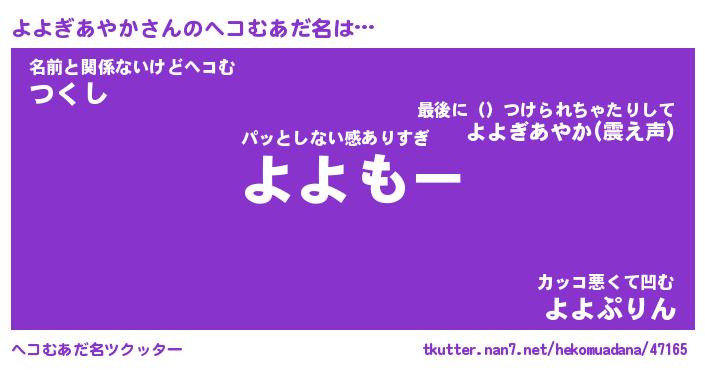 | ポケモン風あだ名 | 『ヨヨチュウ』『ヨヨギダネ』 |