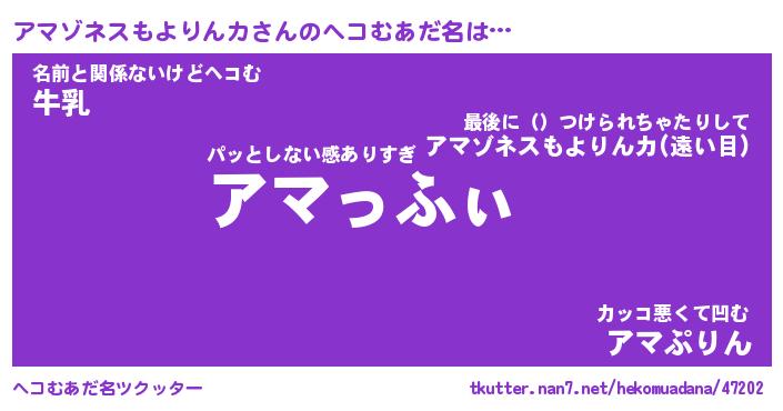 | 意味不明あだ名 | 『ペロリンアマゾネスもよりんカ』 |