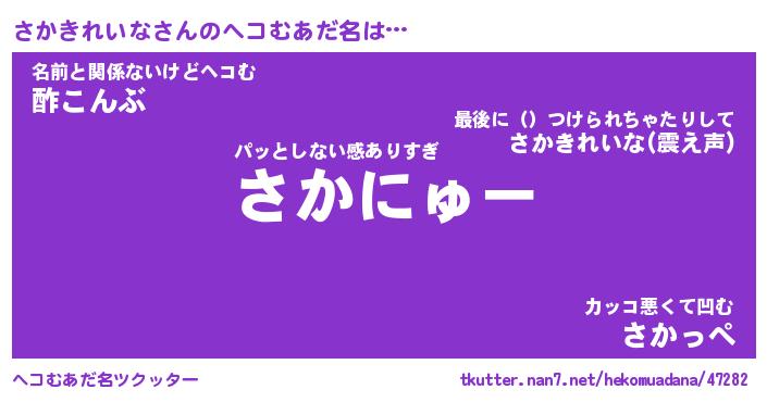 | ヒーロー風カッコイイあだ名 | 『スーパーサカキレイナ』『魔戒騎士サカ』 |