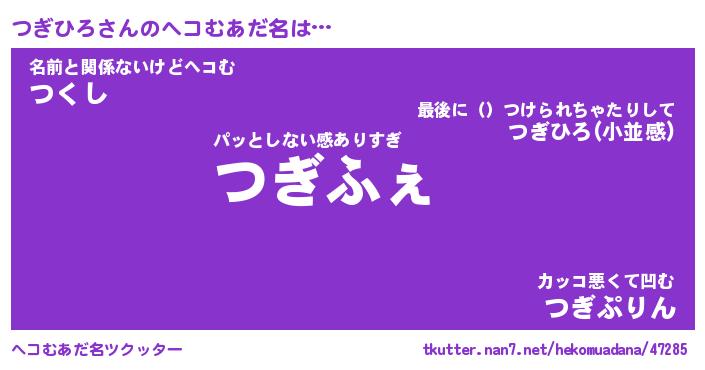 | 意味不明あだ名 | 『ペロリンつぎひろ』『永久保存つぎひろ』 |