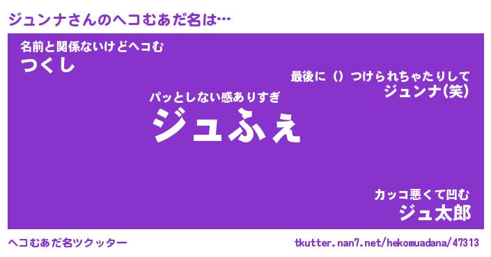 | 意味不明あだ名 | 『ペロリンジュンナ』『永久保存ジュンナ』 |