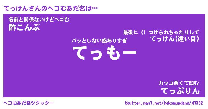 | 意味不明あだ名 | 『ペロリンてっけん』『永久保存てっけん』 |