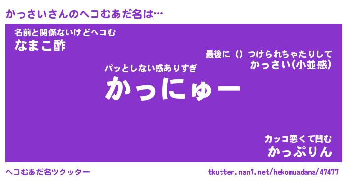 | ポケモン風あだ名 | 『カッチュウ』『カッサダネ』 |
