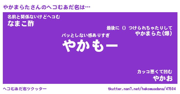 | ポケモン風あだ名 | 『ヤカチュウ』『ヤカマダネ』 |