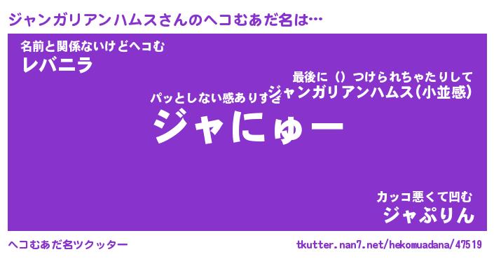 | 欧米人風あだ名 | 『マイケルジャンガリアンハムス』 |