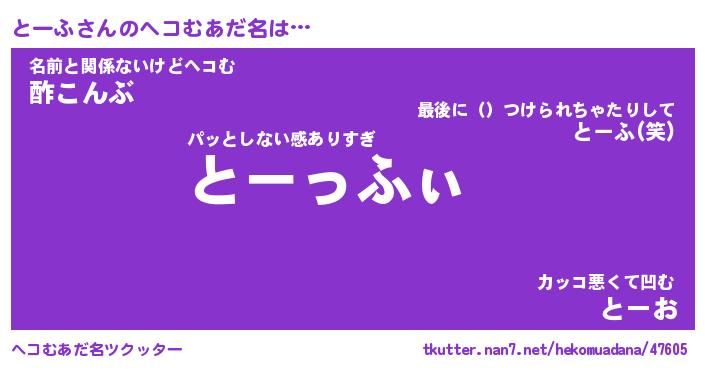 | ポケモン風あだ名 | 『トーチュウ』『トーフダネ』 |