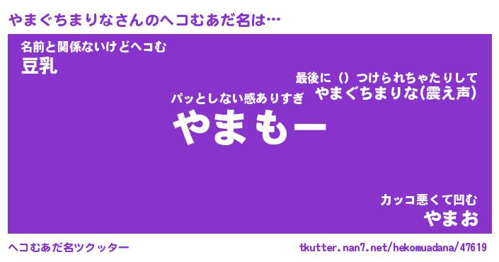 | 恥ずかしいあだ名 | 『プリティーやまぐちまりな』『やまちん』 |