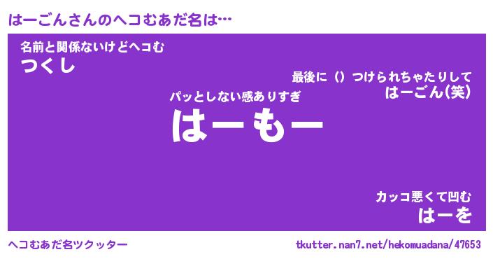 | 意味不明あだ名 | 『ペロリンはーごん』『永久保存はーごん』 |