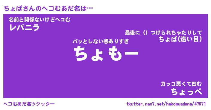 | 意味不明あだ名 | 『ペロリンちょば』『ちょばフォーエバー』 |