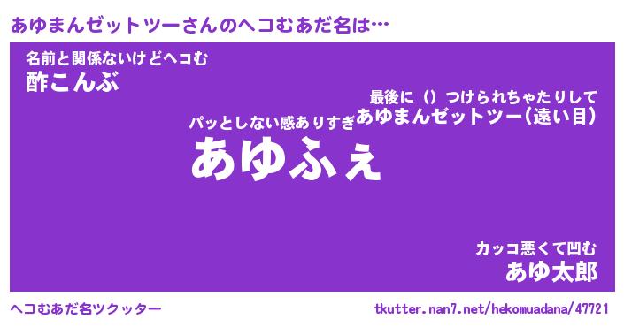 | ヒーロー風カッコイイあだ名 | 『スーパーアユマンゼットツー』 |