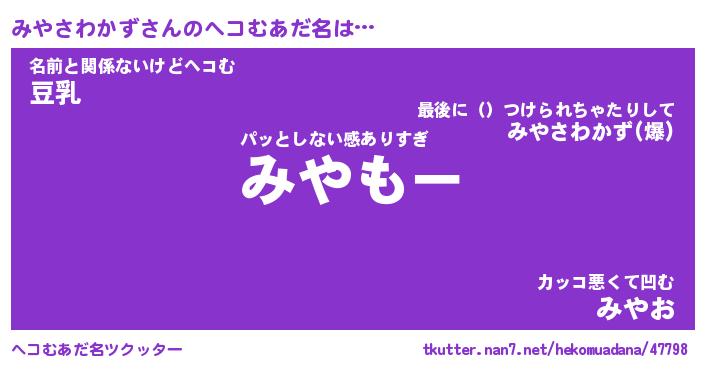 | 恥ずかしいあだ名 | 『プリティーみやさわかず』『みやっちょ』 |