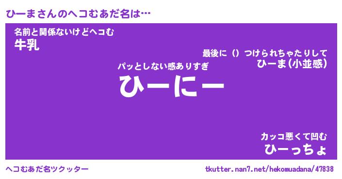 | 意味不明あだ名 | 『ペロリンひーま』『ひーまフォーエバー』 |