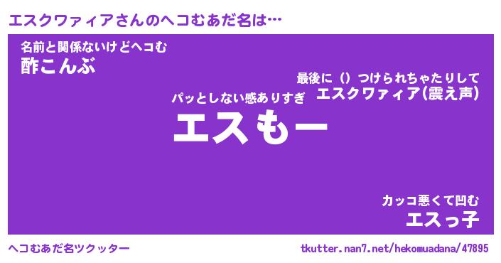 | 男性向けラノベタイトル風あだ名 | 『エスクワァィアの憂鬱』 |