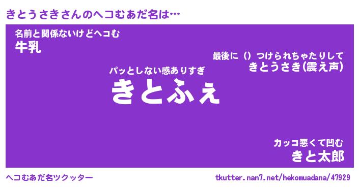 | 男性向けラノベタイトル風あだ名 | 『きとうさきの憂鬱』 |