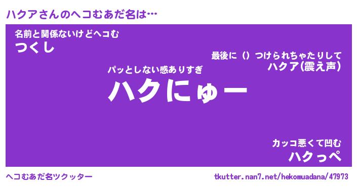 | ヒーロー風カッコイイあだ名 | 『スーパーハクア』『ウルトラハクアマン』 |