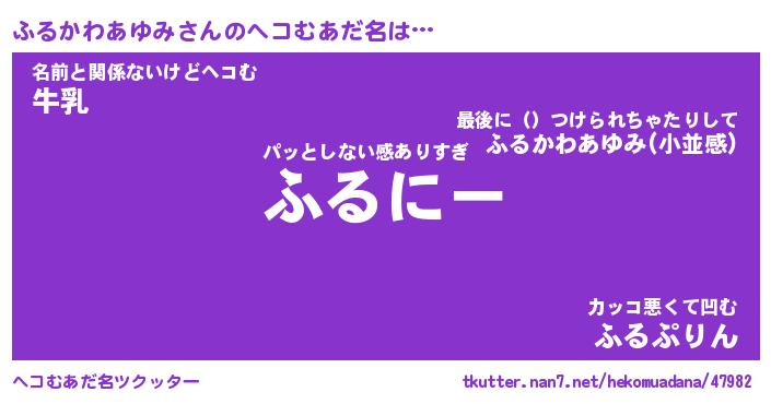 | 胡散臭い通販商品みたいなあだ名 | 『億万長者になれるブレスレット…その名も「ふるかわあゆみ」』 |