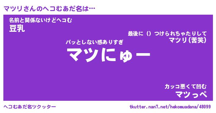 | ファンタジー風あだ名 | 『マツフェル』『エターナルマツリー』 |