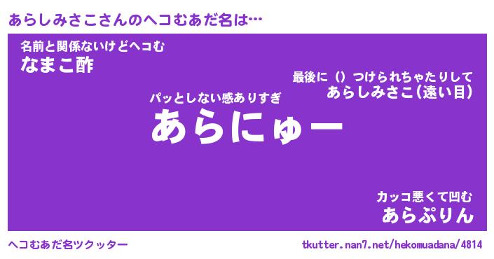 | 胡散臭い通販商品みたいなあだ名 | 『必ず成功する水晶球…その名も「あらしみさこ」』 |