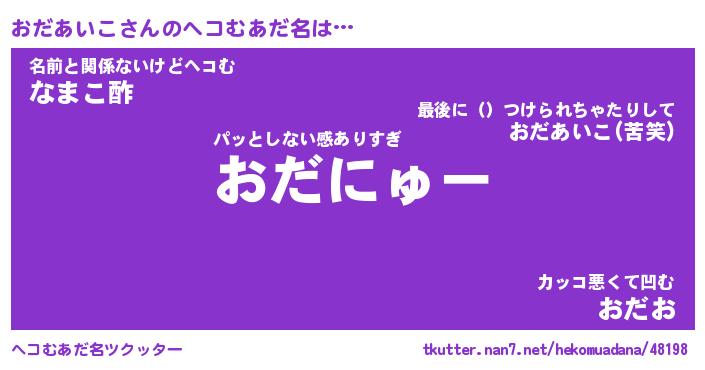 | ツイッター | おだあいこさんのツイッターID『dendenmushi_idle』 |