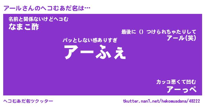 | ファンタジー風あだ名 | 『アーフェル』『エターナルアールー』 |