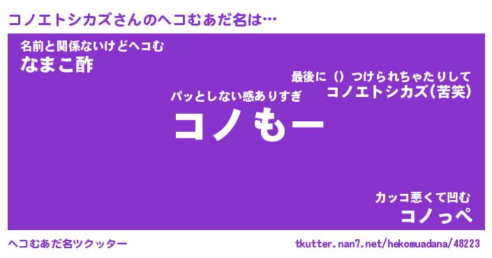 | 欧米人風あだ名 | 『マイケルコノエトシカズ』 |