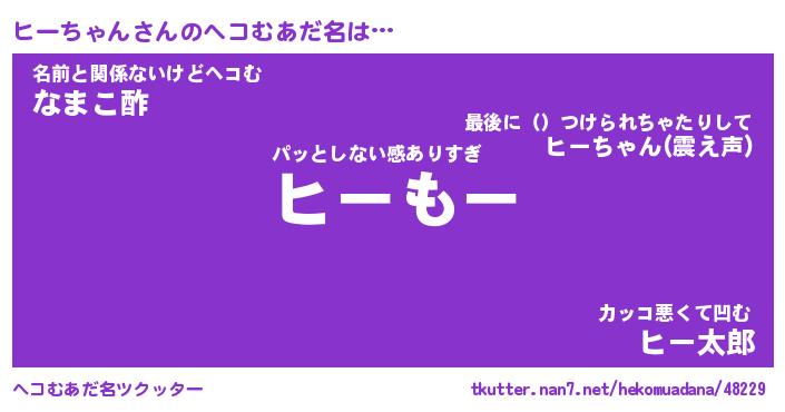 | ヒーロー風カッコイイあだ名 | 『スーパーヒーチャン』『幻影騎士ヒー』 |