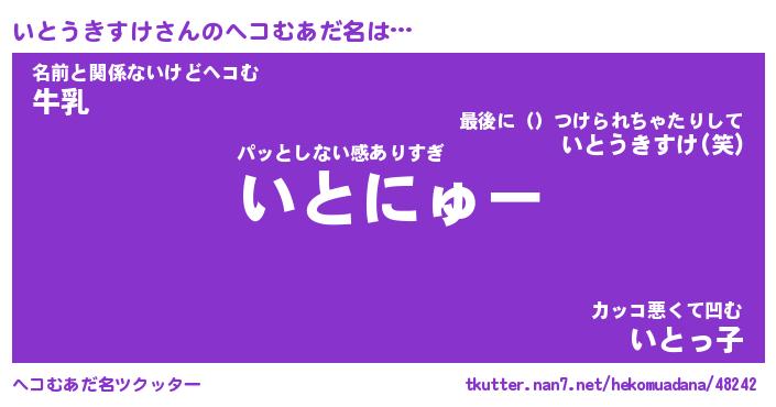 | 胡散臭い通販商品みたいなあだ名 | 『モテモテ間違いなし水晶球…その名も「いとうきすけ」』 |