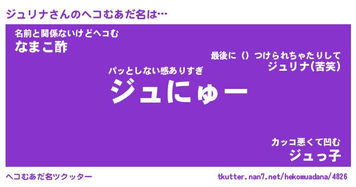 | 意味不明あだ名 | 『ペロリンジュリナ』『永久保存ジュリナ』 |