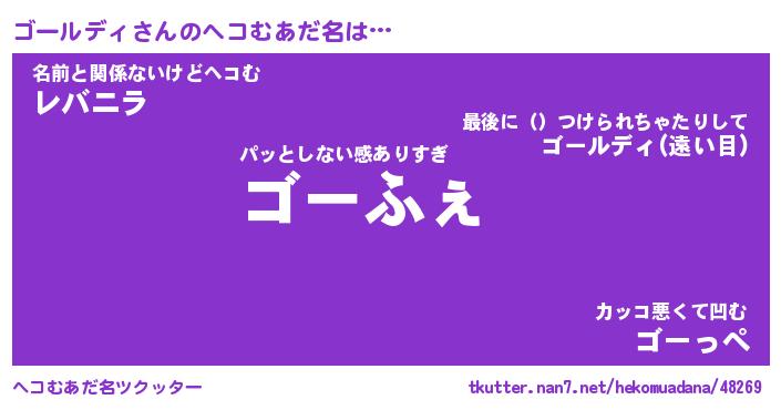 | 男性向けラノベタイトル風あだ名 | 『ゴールディの憂鬱』 |