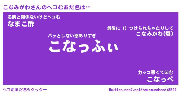 | 胡散臭い通販商品みたいなあだ名 | 『モテモテ間違いなし霊験あらたかなお札…その名も「こなみかわ」』 |