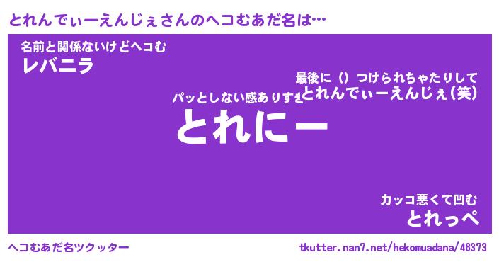 | 男性向けラノベタイトル風あだ名 | 『とれんでぃーえんじぇの憂鬱』 |