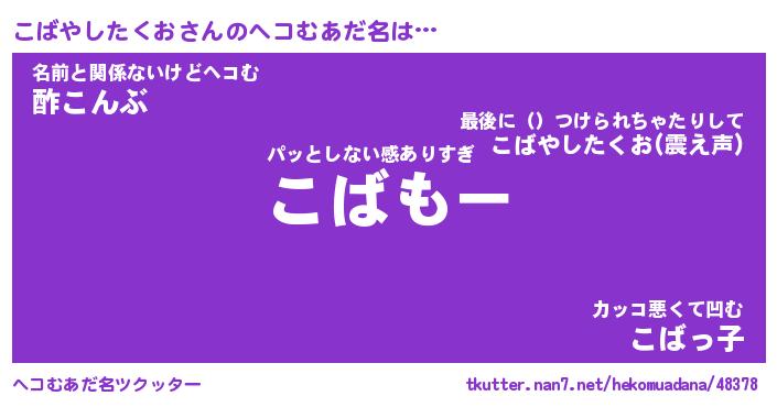 | ポケモン風あだ名 | 『コバチュウ』『コバヤダネ』 |