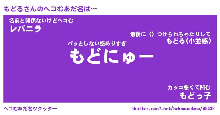 | ポケモン風あだ名 | 『モドチュウ』『モドルダネ』 |