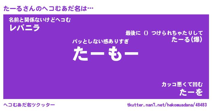 | ヒーロー風カッコイイあだ名 | 『スーパータール』『ウルトラたーるマン』 |